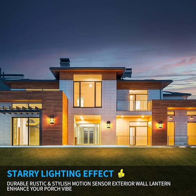 - 【Super Easy to Install & Well Packaged】This motion sensor outdoor wall light is not only both aesthetics and functionality but very well constructed. The outdoor lights for house is pre-assembled, no extra installation is required, just put in any bulb that meets the E26 socket. In order to let customers enjoy the best shopping experience and reduce the troublesome, we pack the products tightly to ensure that you can get the perfect outdoor motion sensor light!