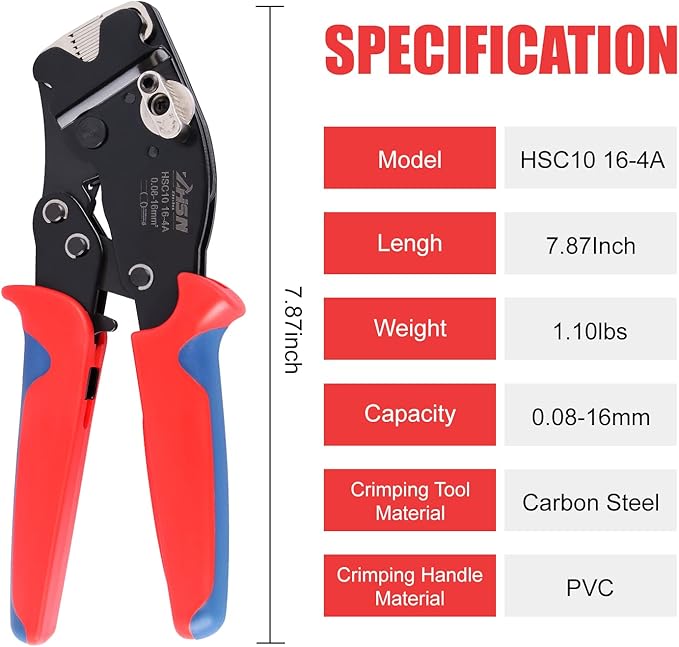 - 【Crimper Range】High capacity range of 0.08-16 mm²/AWG 30-5 for end-sleeves ferrule,ensuring crimping precision with a three-stage adjustable knob function