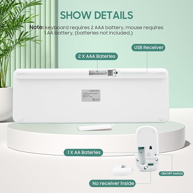 - ✅[PLUG and PLAY 2.4G WIRELESS KEYBOARD MOUSE]: Simply insert the ONLY ONE nano USB receiver (stored inside keyboard, NOT inside the mouse) into your computer and use the keyboard and mouse instantly. 1 usb Receiver Can Connect Both Keyboard and Mouse.