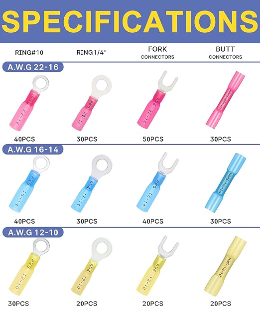 - Complete kit includes 380 heat shrink wire connectors, 1 crimping tool, and an organizer