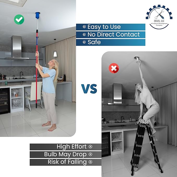 - INNOVATIVE VACUUM OPERATED DESIGN: The cutting-edge vacuum suction technology used in our tall ceiling light bulb changer ensures a secure slip-free grip. Only works on bulbs that are completely CLEAN and SMOOTH. If the surface is dirty, you can use a damp rag attached to the EZX to clean the bulb first. Textured design or dirty bulbs may prevent proper suction. It might not function properly with rusted bulb bases.