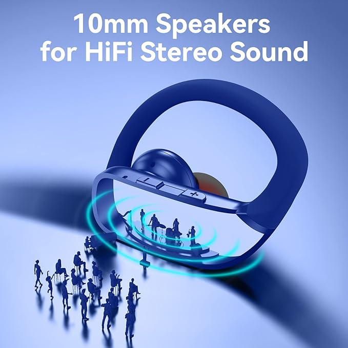 bmani Wireless Earbuds Bluetooth Headphones 48hrs Play Back Sport Earphones with LED Display Over-Ear Buds with Earhooks Built-in Mic Headset for Workout Blue