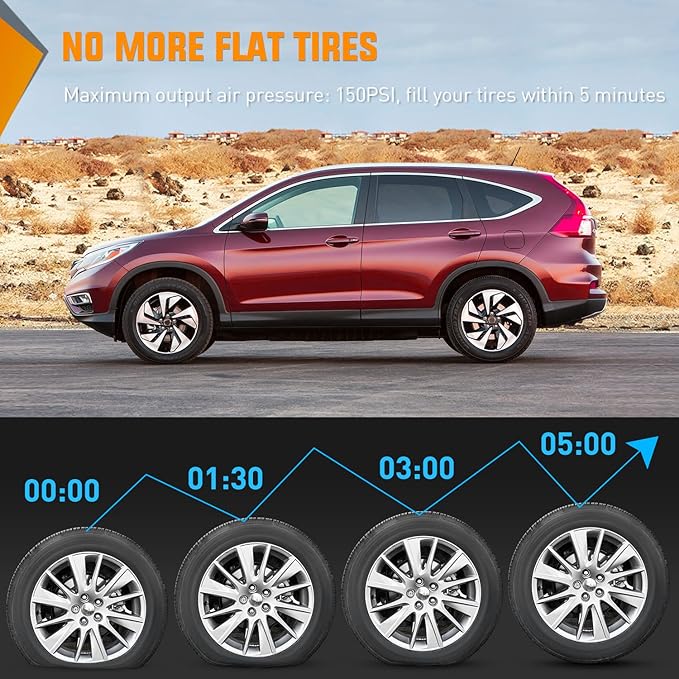 - Fast Inflation and auto Shut-off: Nilight air pump will inflate your tires within minutes to reach the standard pressure and automatically shut off after the preset value is reached. No more worry about over-inflating. Suitable for inflating tires on cars, MPVs,bikes, sedan, midsize SUV. Can also inflate balls, balloons,inflatable kayak, air cushion etc.