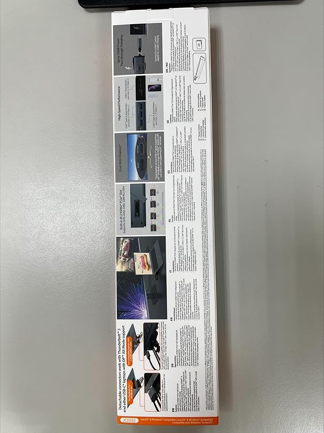 j5create USB C Dual 4K 60Hz Display Docking Station (12-in-1), Built-in M.2 SSD Slot, HDMI, DisplayPort, 10Gbps USB-A, Card Reader, PD 100W, Ethernet, for 2021 MacBook Pro (JCD552)