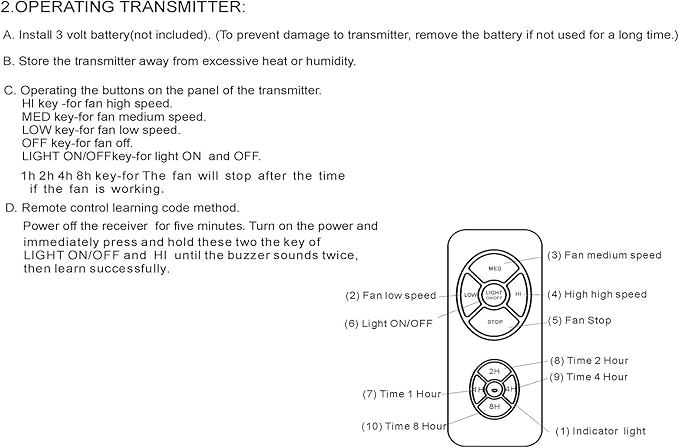 - 【 NO Buzzer noise 】 NO dimming function This universal ceiling fan remote is Designed to be no buzzer noise so as not to affect others , only control by turn ON/OFF.