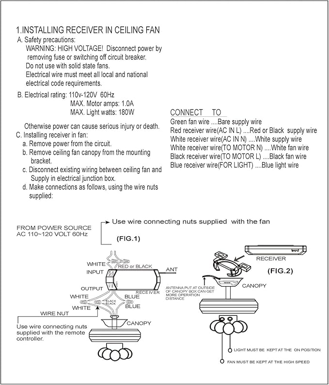 - 【 NOTE 】 If you have PULL CHAINS SWITCH, before using the wireless remote control, use the PULL CHAINS SWITCH to turn the wind speed to maximum and turn the fan light on. Only in this way can the PULL CHAINS SWITCH and wireless remote control be used together.