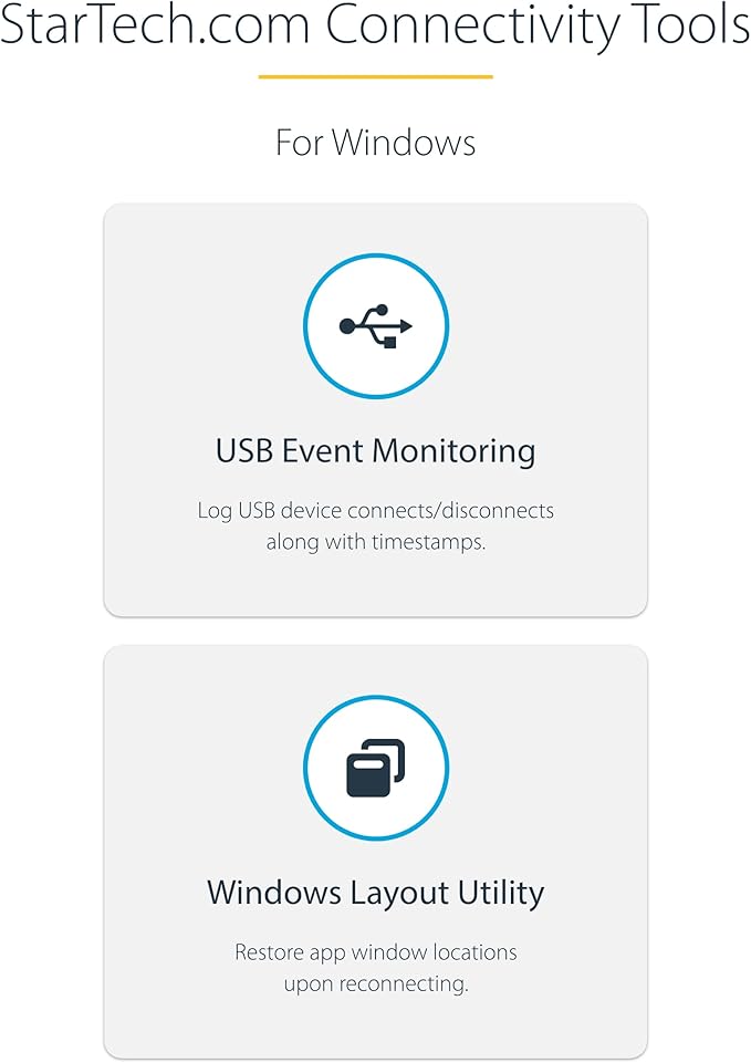 - OUR ADVANTAGE: Included Connectivity Tools app with USB Event Monitoring to log/timestamp USB port usage, enabling admins to identify potentially malicious devices & Windows Layout Utility to restore windows app locations when re-connecting displays