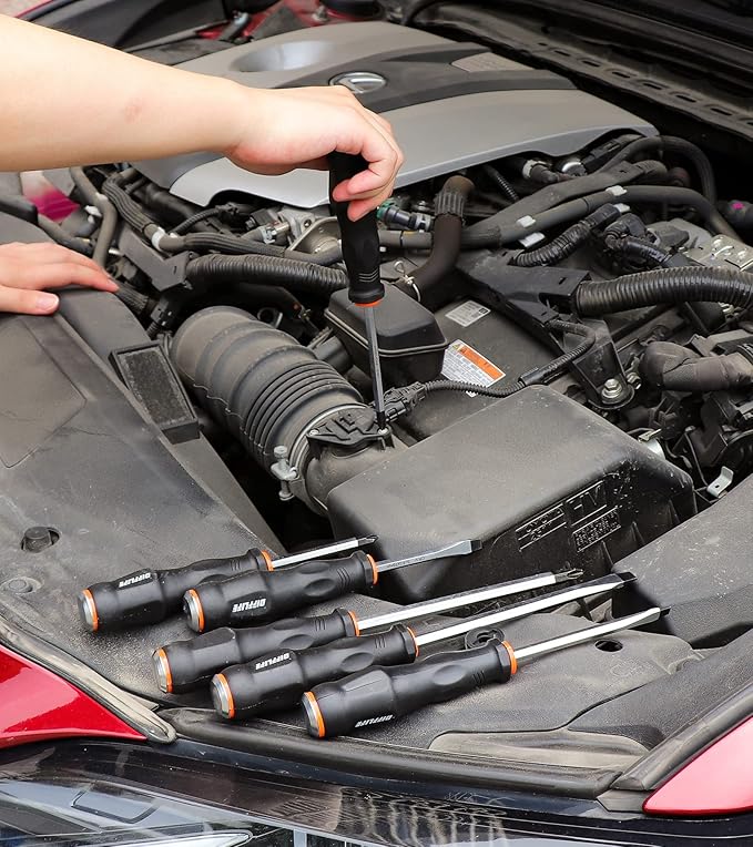 - ๐ ๏ธScrewdriver Material: Cr-v steel with heat treatment, high hardness and good toughness and resistance, Black finish blade with magnetic tips which could conveniently attracts screws