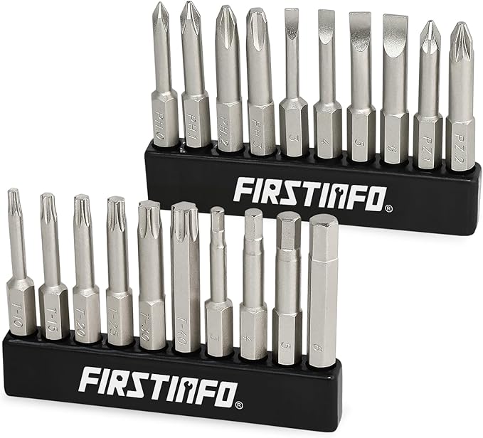- 【Various Specification and Sizes 】Includes 6 pcs Star of T10, T15, T20, T25, T30, T40; 4 pcs Hex of 3mm, 4mm, 5mm, 6mm, 4 pcs Flat of 3mm, 4mm, 5mm, 6mm; 4 pcs Phillips of PH0, PH1, PH2, PH3; 2 pcs Pozi of PZ1, PZ2.