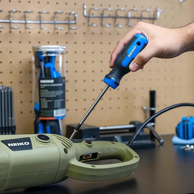 NEIKO 01378A Magnetic Screwdriver Set | 10 Piece | Phillips & Flathead | Heat Treated Chrome Vanadium Steel | Slotted Head Tip with Non-Slip Cushioned Handle Grips | Small Screw Driver Tool Kit