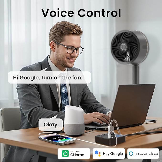 - 【Hands-Free Voice Control】Effortlessly operate this smart outlet switch using simple voice control through Amazon Alexa or Google Assistant. Perfect for users with limited mobility or when your hands are occupied (2.4GHz WiFi only).