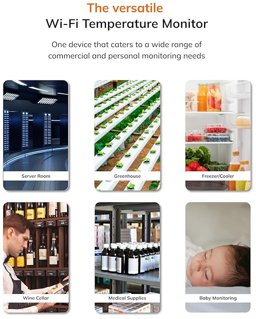 - VERSATILE & MULTI-PURPOSE USE: Ideal for a variety of environments including vacation homes, RVs, greenhouses, cellars, boats, server rooms, incubators, music rooms, cigar humidors, freezers, walk-in cold storage, frozen pipes, furnaces, food storage, and medical supplies. Perfect for any space needing reliable temperature and humidity monitoring.