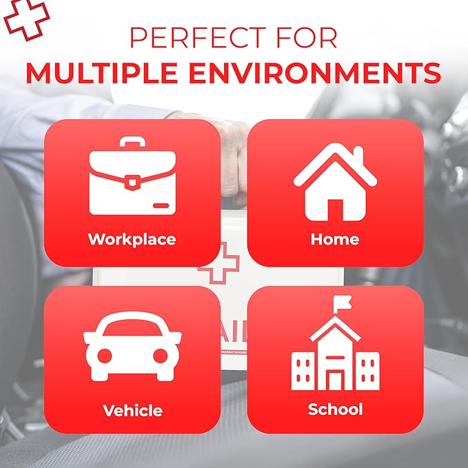 - MULTI-PURPOSE – Meant for workplaces with high-risk environments and over 40 employees but will also cover the first aid needs of households, can also be kept at schools, cars, etc.