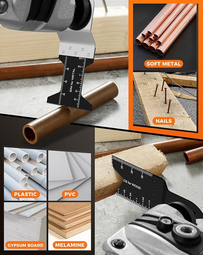 - 【Precision Cutting Design】- The carbide multitool blades built-in length markers on two sides, one side is inch and other is centimeter, ensure you can get accurate cuts easy and fast while you working with it.Special design precision saw blades to provide faster, cleaner cuts in wood and plastic.