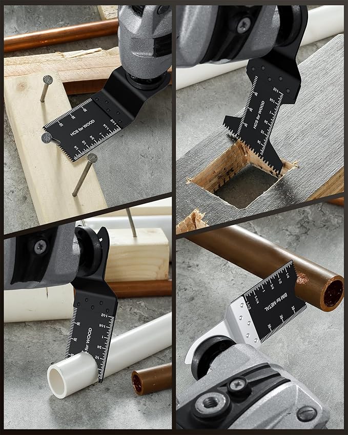 - 【Widely Use Range】- These strong oscillating multitool blades ideal for demolition, plumbing, remodeling and general wood and soft-metal cutting. This blade can also tackle materials such as plastic, fiberglass and plexiglas. These oscillating tool accessories can meet a variety of needs, which could be used for workshop, household or other place.