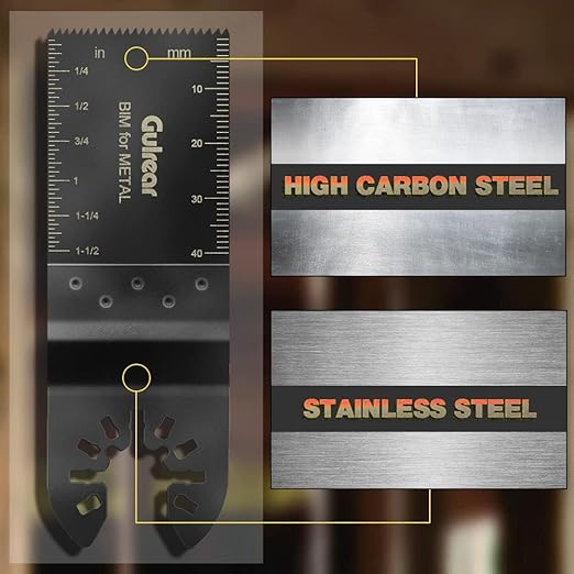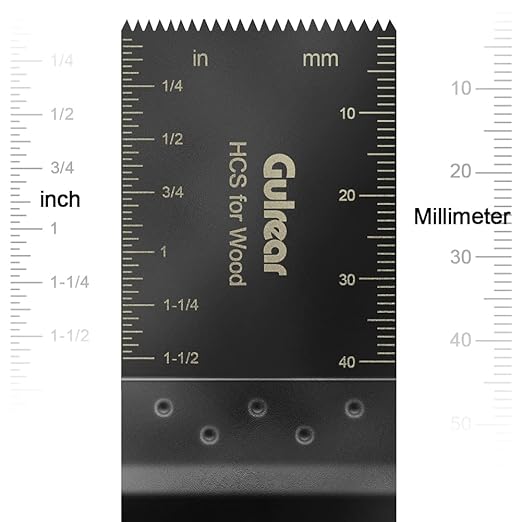- 2Pcs Bi-metal: They are made of M42 high-speed steel and high-quality stainless steel, and have a longer service life. This ocillalating tool wood blades manufactured with a durable cutting edge that resists wear and cuts quickly. Professional for cutting Nail, soft metal, hardwood, plasterboard, fiberglass, Acrylic, Laminate. Power oscillating tool blades built-in length markers on two sides, one side is inch and other is centimeter, ensure you can get accurate cuts easy and fast while you.