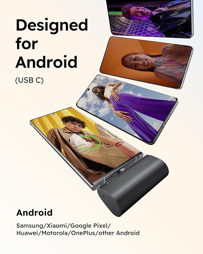 - No Need Extral Cords for charging android phones : If you are Android fans (USB C output) and are tired of carrying cables to charge your android phone, this small portable charger is definitely best choice for you. Ultra small and ultra lightweight, dimensions is only 77.2*35.0*24.7mm (3.03''x1.38''x0.97''), only weigh 0.2lb. Best portable phone charger for android.