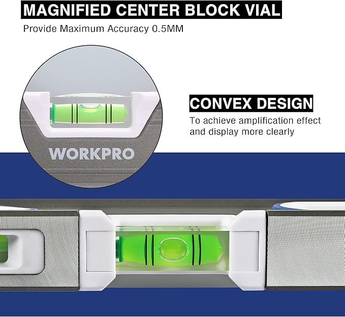 - CONVENIENCE - Magnified center block vial with high visibility magnifies the bubble for better reading