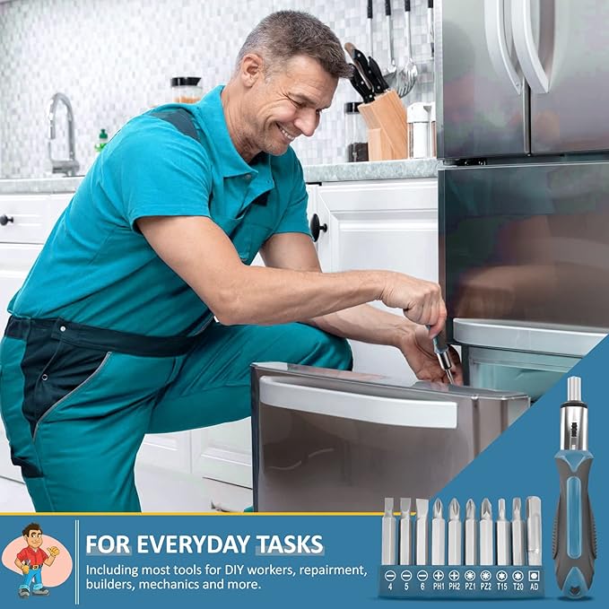 - 【Contain Basic Hand Home Rrepair Tool Set】Sundpey 148pcs homeowner portable travel tool set includes screwdriver bits,voltage tester, slotted screwdriver set, phillips screwdriver set, 10ft tape measure , water pump pliers, 8″ adjustable wrench, 6″ wire pliers, 6″ needle nose pliers etc for regular house indoor/outdoor maintenance.