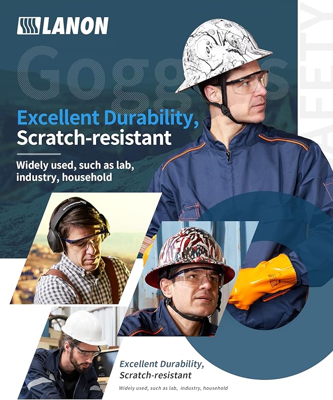 LANON Anti-Fog Safety Goggles with Ajustable Temples, 2.5 Times ANSI Z87.1 Double-sided Antifog, Side Protection, High Transmission, Lightweight & Comfortable Safety Glasses.