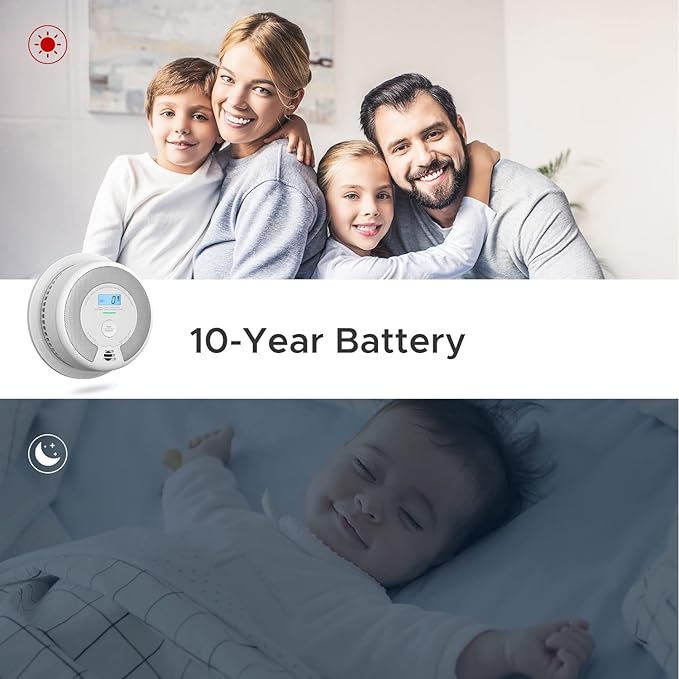 - 10-Year Battery: The fire and CO alarm is built with a sealed lithium battery that provides 10 years of continuous power, saving you from changing batteries and power outage