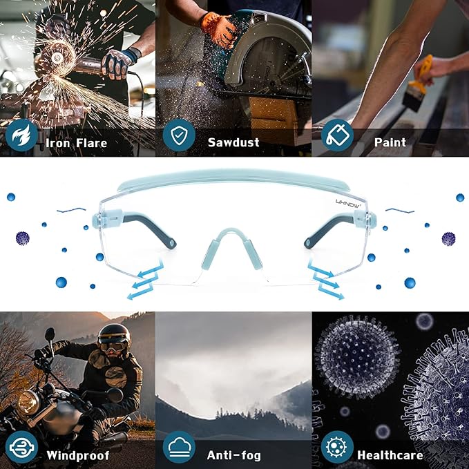 - 【HIGH-PERFORMANCE ANTI-FOG COATING】UKNOW premium anti-fog treatments keep the safety goggles fog-free, no matter any conditions. The anti-fog coatings are able to eliminate condensation of moisture by dispersing the water droplets into a thin sheet that is invisible to the human eye, eliminating fog and allowing the clear vision of your surroundings.