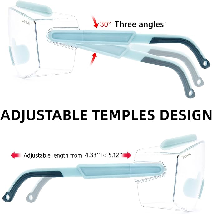 - 【OVER GLASSES SAFETY GOGGLES】These safety glasses with a one-piece polycarbonate wraparound lens are designed to protect both your eyewear and eyes. They can fit over most prescription glasses(up to 5.71 in wide, up to 1.85 in high) and also can be worn as a pair of typical safety glasses.