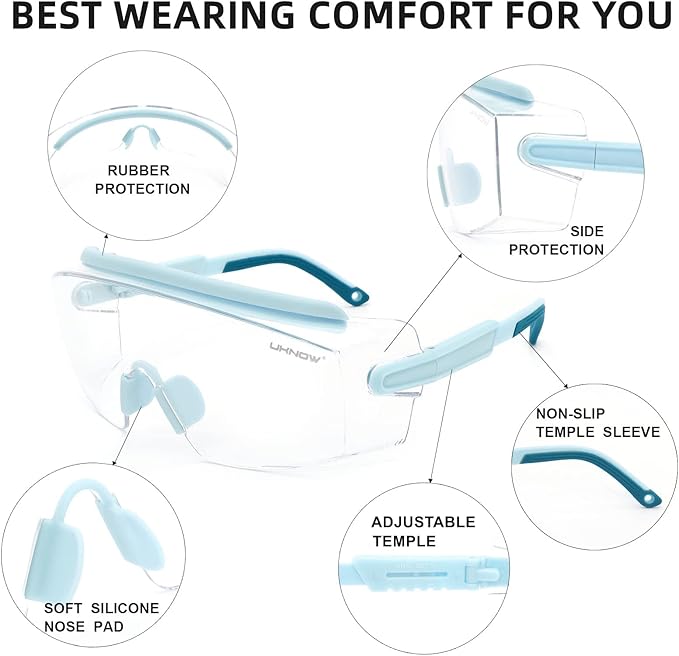 UKNOW Safety Goggles Over Glasses, Safety Glasses Anti Fog Wraparound Eye Protection, Protective Eyewear ANSI Z87.1