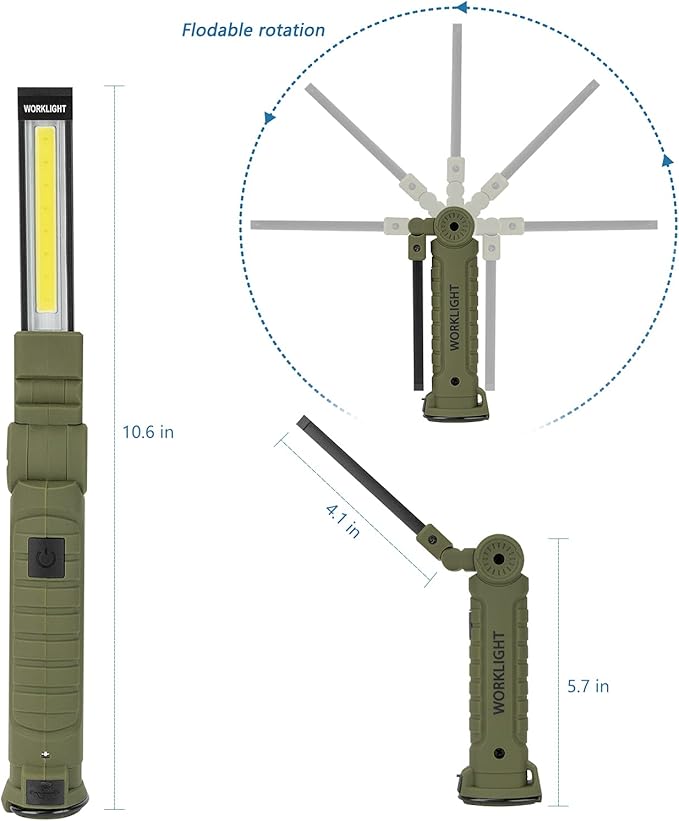 - Multiple uses:Works great either as garage work light, shop work light, inspection light at job sites or as an outdoor lights portable for car repair,camping,reading, hiking,fishing or emergency.