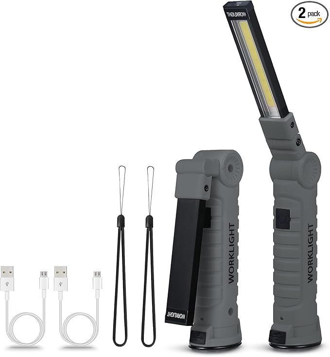 LED Rechargeable Flashlight, Mechanic Tools Trouble Light Cordless Worklight with Magnetic Base 360°Rotate 5 Modes,Portable Inspection Troch for Mens Gift,Automotive,Camping and BBQ(2 Pack)