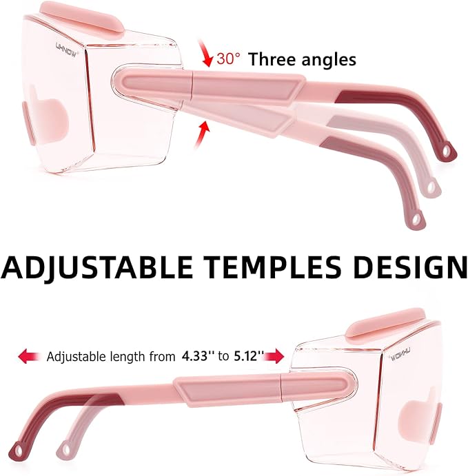 - 【OVER GLASSES SAFETY GOGGLES】These safety glasses with a one-piece polycarbonate wraparound lens are designed to protect both your eyewear and eyes. They can fit over most prescription glasses(up to 5.71 in wide, up to 1.85 in high) and also can be worn as a pair of typical safety glasses.