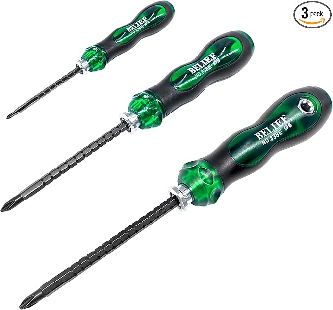 Yalin 3-Piece Ratchet Telescopic Screwdriver, Double-Head Magnetic Ratcheting Screw Driver, Adjustable Rod Length, The Tip of the Rod are Slotted and Phillips, Industrial Strength, Easy to Load