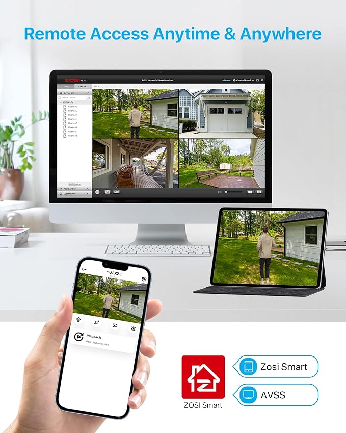 - 【Customizable motion detection zone and alerts 】-- be notified when there are unexpected movements. Smart notifications with image will be pushed to your smartphone via ZOSI Smart app. You also can setup the detection zone from your NVR to minimize false alarms.