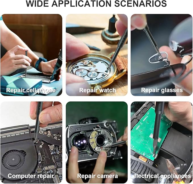 - 【WIDE APPLICATIONS】Morcoxina precision screwdriver set includ of 44pcs screw bits(phillips, pentalobe, torx,hex, slotted, triangle, square and other sizes). Perfect repairing tools for Electronics, Laptop, Phone, PC, Watch, Tablet, Glasses, Cameras, Toys & Model, and more.