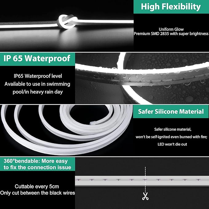 - Durable and Customizable: LED strip is made of silicone and metal with 6000K color temperature and can be cut and extended to fit your needs