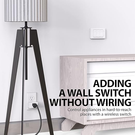 - [CONVENIENT WIRELESS LIGHT SWITCH] Fosmon’s WavePoint wireless outlet switch allows you to add a wall switch to your light or fan without electrical wiring or hiring an electrician. By simply plugging the receiver to an outlet and mounting the switch on the wall or using it as a hand-held remote, you can turn the outlet on and off with a simple click. It is perfect for lighting, electronics, or small appliances.