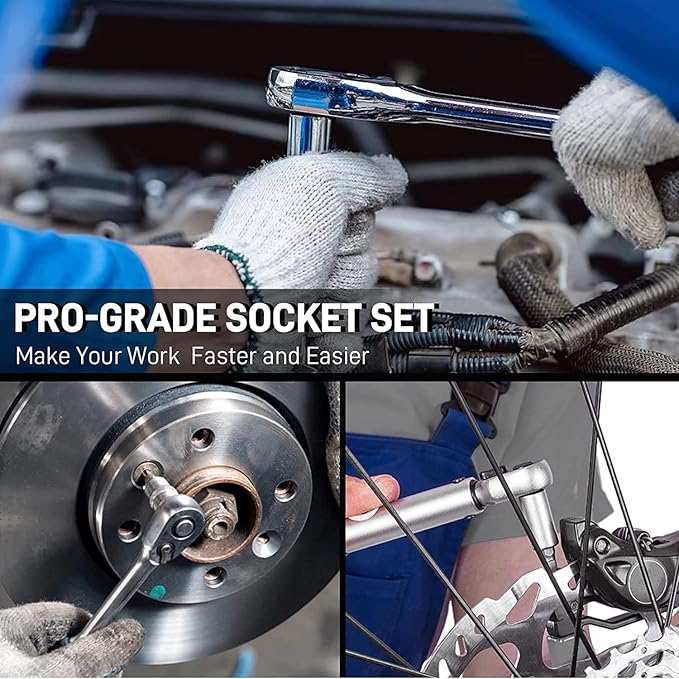 - 【SAE & Metric Size】DISEN 32 Pieces Hex Bit Socket Set provides both SAE and Metric size options: 16pc SAE HEX: 1/4 inch drive (5/64", 3/32", 1/8", 5/32", 3/16", 7/32", 1/4"), 3/8 inch drive (9/32", 5/16", 3/8", 7/16", 1/2"), 1/2 inch drive (9/16", 5/8", 11/16", 3/4"). 16pc Metric HEX: 1/4 inch drive (2, 2.5, 3, 4, 5, 5.5, 6mm), 3/8 inch drive (7, 8, 9, 10, 12mm), 1/2 inch drive (14, 15, 17, 19mm)