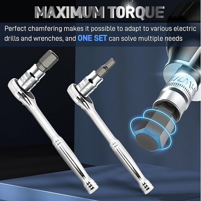 - 【Precise Tightening】These must-have allen wrench sockets can be inserted into any torque wrenches or impact driver tightly and precisely with the chamfered bit ends. You can use them for auto repair, and household appliance maintenance