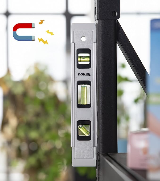 DOWELL Magnetic Torpedo Level Mini Bubble Level Box Spirit Level Alloy Frame 180/90/45 Degree 9-Inch (2, White)