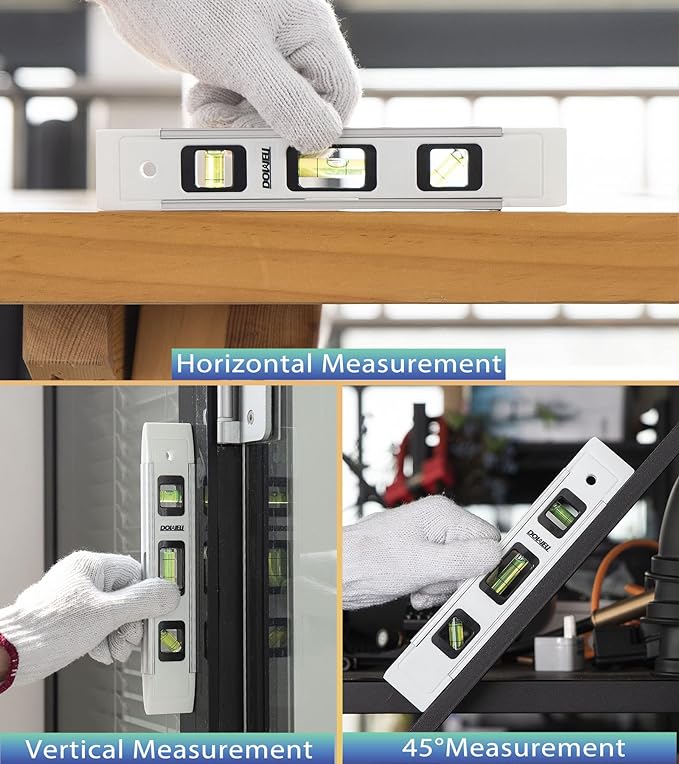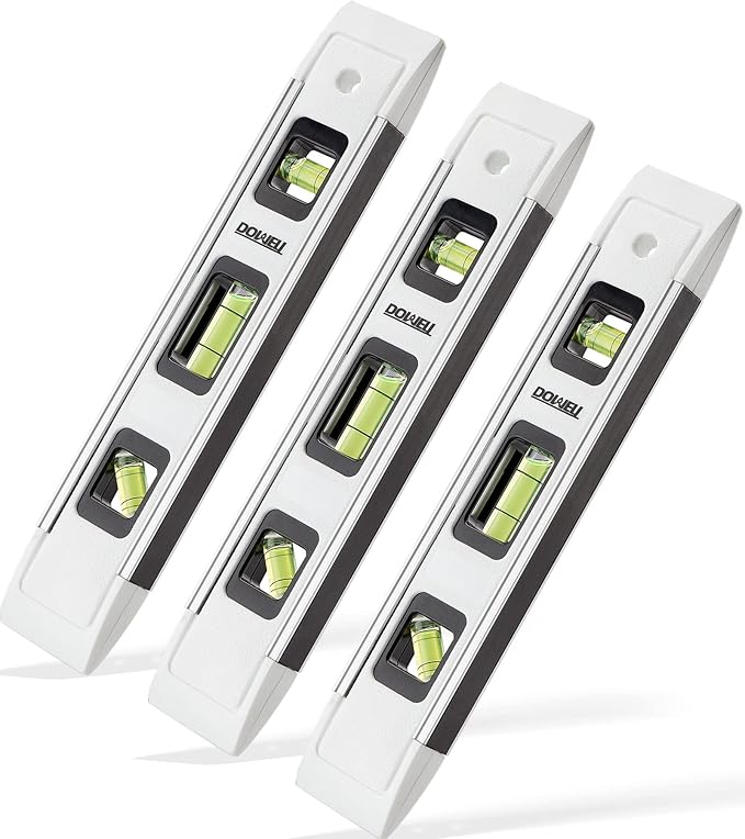 DOWELL Magnetic Torpedo Level Mini Bubble Level Box Spirit Level Alloy Frame 180/90/45 Degree 9-Inch (3, White)