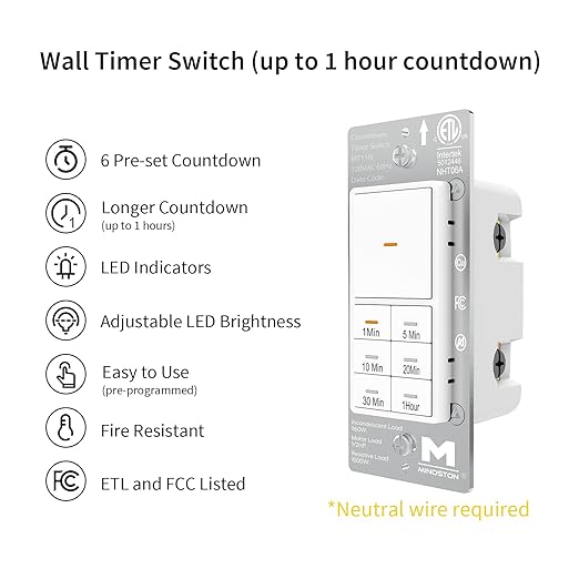 - Neutral wire improves safety and stability: The neutral wire of the countdown timer switch helps maintain balanced voltage at the switch and improves electrical safety
