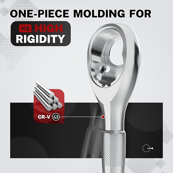 - [HIGH-QUALITY MATERIAL] The stubby ratchet is of premium chrome vanadium steel structure. Fully polished chrome-plated surface, stylish thread design, corrosion-resistant, easy to wipe, and non-slip. Our goal is to meet or exceed tool standards.