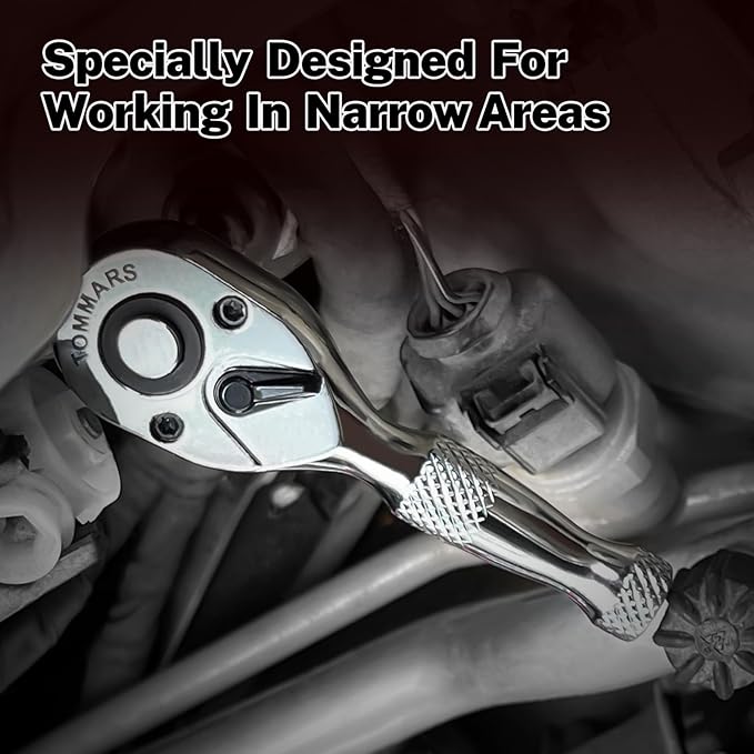 TOMMARS 3/8-Inch Drive Stubby Ratchet Mini Ratchet Quick-Release Head 72-Tooth