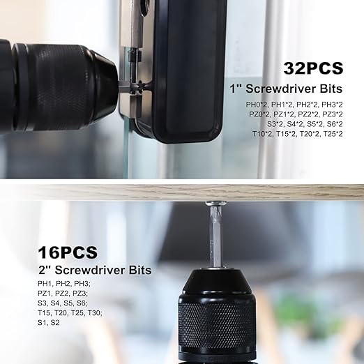 - [Universal 1/4" Hex Shank Compatibility] Works with all drills/drivers (0-2,500 RPM). Includes T10-T40 security Torx, PH1-PH3 Phillips, SL4-SL8 flatheads for automotive repair & drywall installation.