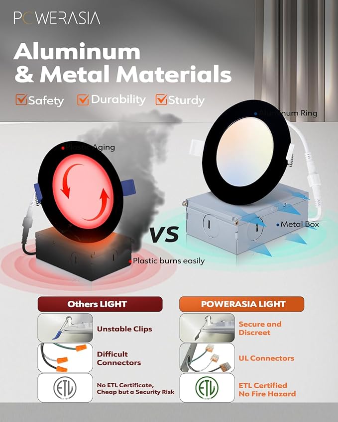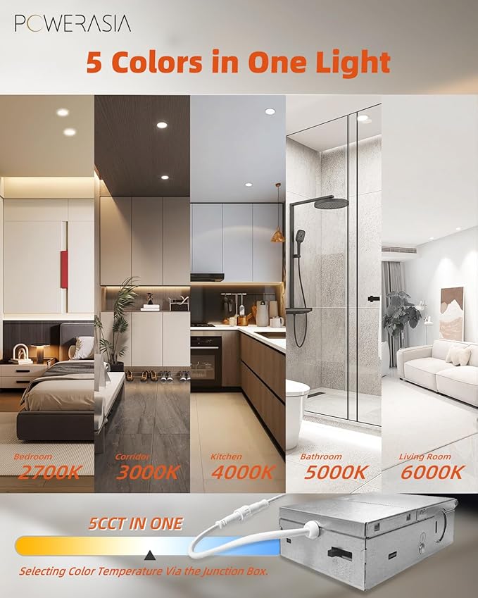 - ๐กใHigh Brightnessใ POWERASIA 90+CRI technology brings true color rendering to your house. The 4-inch slim lights use the new generation of LED chips with higher lumens and lower power. 700LM 9 Watts, which equals to 110W incandescent lamp, saving you up to 88% in energy costs.