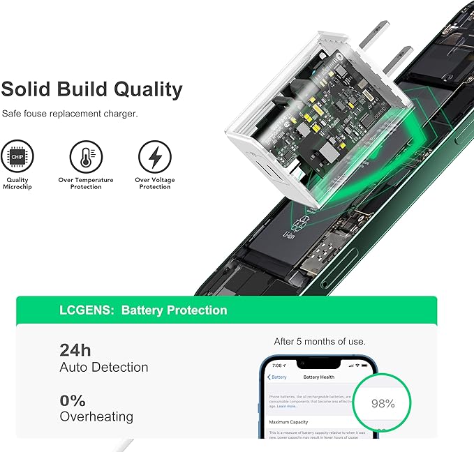 - 40W USB C Chargers: iphone charger is equipped with 2 USB-C ports to allow you to charge 2 devices at the same time. You can take one as regular use, and the other as a spare.