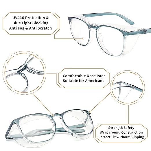 Alsenor Safety Glasses Anti Fog Goggles Protective Eyewear Blue Light Blocking Anti Dust UV Protection Glasses For Men Women (2 Pack(new-blue+new-purple))
