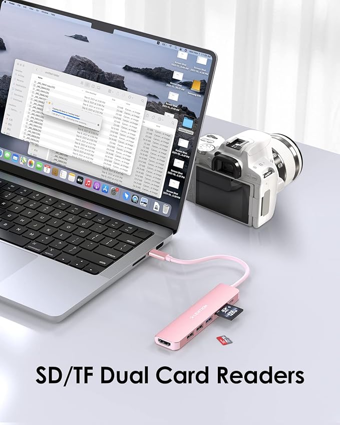 LENTION USB C Hub with 100W Charging, 4K HDMI, Dual Card Reader, USB 3.0 & 2.0 Compatible MacBook Pro, New Mac Air/Surface, Chromebook, More, Stable Driver Adapter (CB-CE18, Rose Gold)