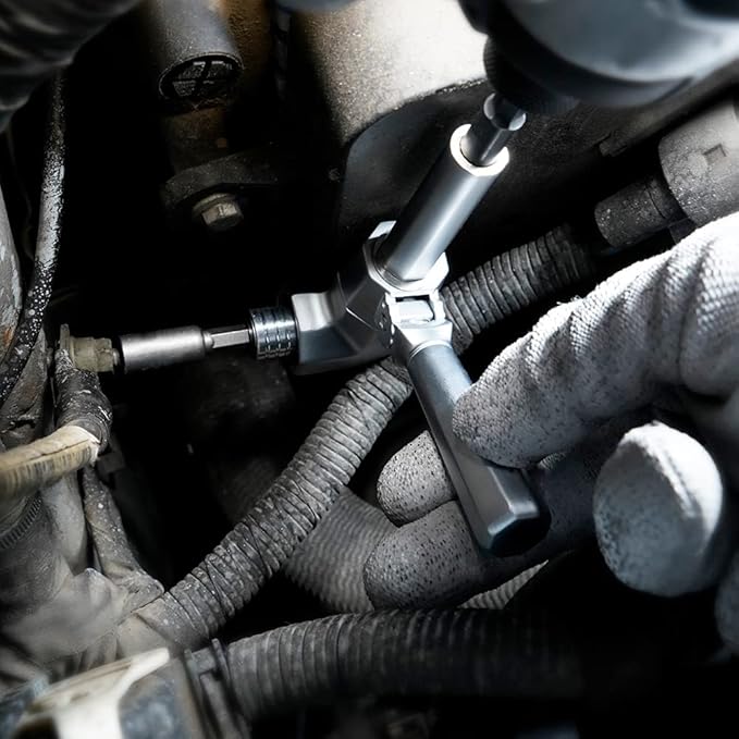 AUCO Durable Right Angle Drill Attachment, Adjustable Drill Adapter, Impact Fit, Max Torque 500 in-lbs (56.5 Nm), All Metal Body & Steel Gear, For Use with Cordless Drill and Impact Driver