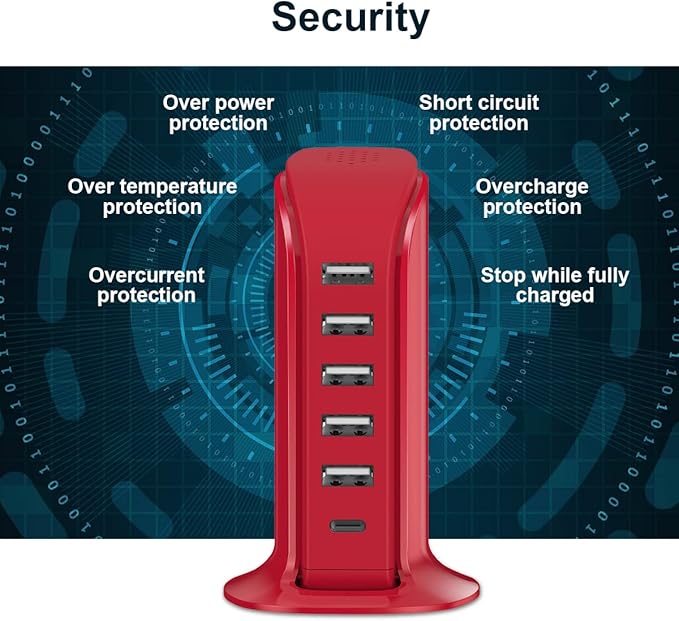 - 6 in 1 USB charger block with c port: Support 6 devices simultaneously, quick charger up to 2.4A for single USB port.
